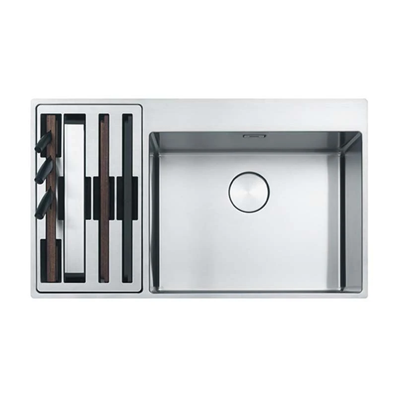 Finish your kitchen with the Franke Box Centre BWX 220-54-27 1.5 Bowl kitchen sink. It is a multifunctional sink that features fully accessorised workcentre with slim top edge profile. The Accessory set includes; 3 knives, 1 wood chopping board, 1 plastic sanitised chopping board, draining rack, colander and strainer bowl. It also comes complete with a pop-up waste and flush cover.