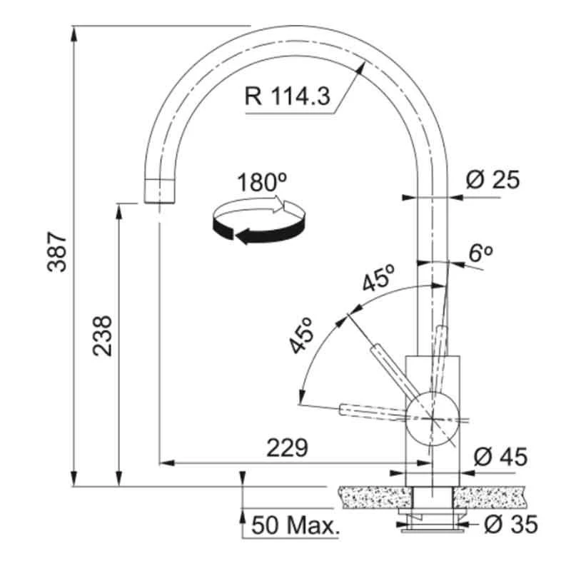 - Tap hole diameter: 35mm