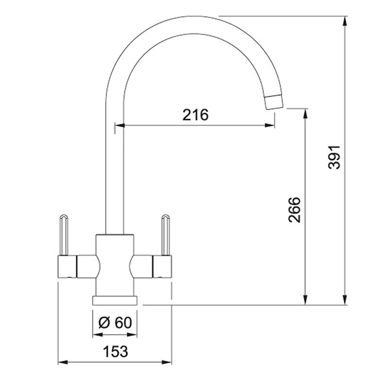 The Franke Krios J spout kitchen tap is manufactured from high quality and durable brass that will stand up to wear and tear. It features a swivel spout design complemented by an easily identifiable twin lever handles to operate hot and cold flow. The tap is also fitted with hard-wearing ceramic discs and suitable for high-pressure water systems. Built to last, the mixer tap is backed by 5 years guarantee from manufacturer for a peace of mind.