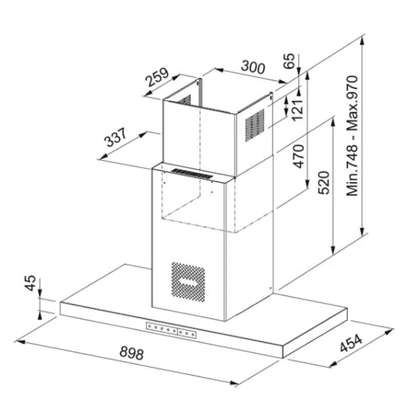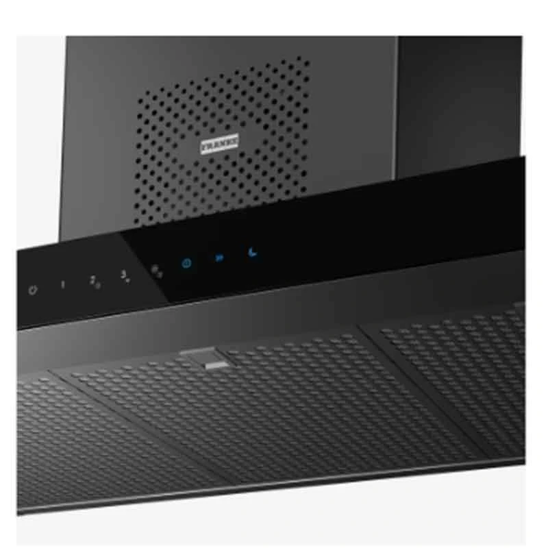 The Frank Mythos 90cm Angled Wall Cooker Hood comes in a stunning black colour with a modern vertical design and wall installation. Alongside its 3 speed settings, this product also features 1 additional boost setting so you can actively increase the airflow when necessary. With an energy efficient Energy class and featuring capacitative touch control and a charcoal filter, Mythos Air Hub removes more than just the lingering odour of food. This integrated system combines a powerful hood with a state-of- the-art air sanitization system. The dedicated UV-C lights abate up to 99.99% of viruses and bacteria from your kitchen, providing you with purer air. Use any of the three modes: manual, intensive and night, to purify your air at a time that suits you best.