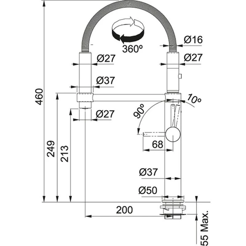 - Flexible pull out hose material: Metal